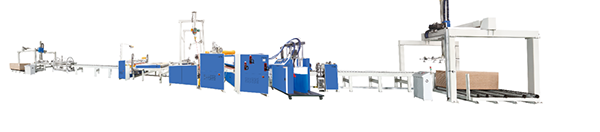 本生產線主要應用于不同材質的板材進行高強度復合,其膠具有極高的粘合度、耐寒、耐高溫、防水、環保等特點。全自動化生產、跟蹤切斷、液壓反壓,成品能在瞬間達到粘合效果。適用于產品有高光櫥柜、復合地板、鋁塑板、防火板、三聚氰胺板等。
